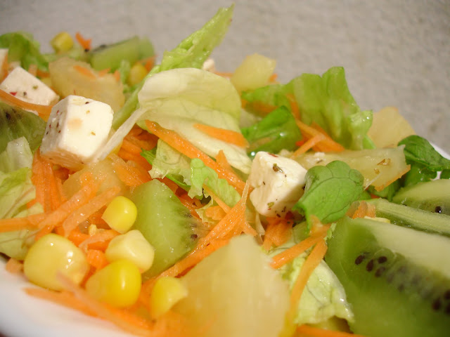 A mim, coube-me fazer o acompanhamento. Esta salada deliciosa da Annabel Langbein, que retive na memória desde o dia em que a vi num dos seus programas. Aprovadíssima.